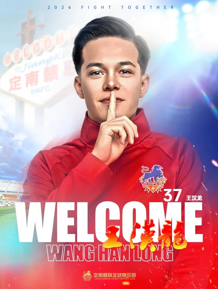 2026赛季王汉龙租借加盟定南赣联,将身穿37号球衣代表定南赣联参加中甲联赛,欢迎王汉龙加入定南赣联足球俱乐部。