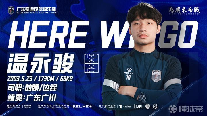 广东铭途足球俱乐部基于对赛季发展方向的整体规划,并与球员本人充分沟通协商,双方达成一致:球员温永骏即日起正式转会至广东铭途足球俱乐部一线队!