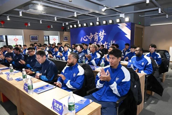 仪式上,运营团队、教练团队代表分别致辞,表示将在新赛季团结拼搏,捍卫荣耀,心中有梦,眼里有光。仪式结尾,武汉三镇一线队队长刘奕鸣代表球队发言,他表示球员们将在新赛季全力以赴、奋勇争先,用实际行动回报所有球迷朋友的支持。