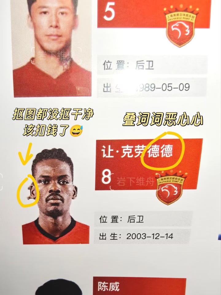 最离谱的是海港新援让-克劳德,他的图片不仅抠图没有抠干净,名字还被改成了克劳德德。