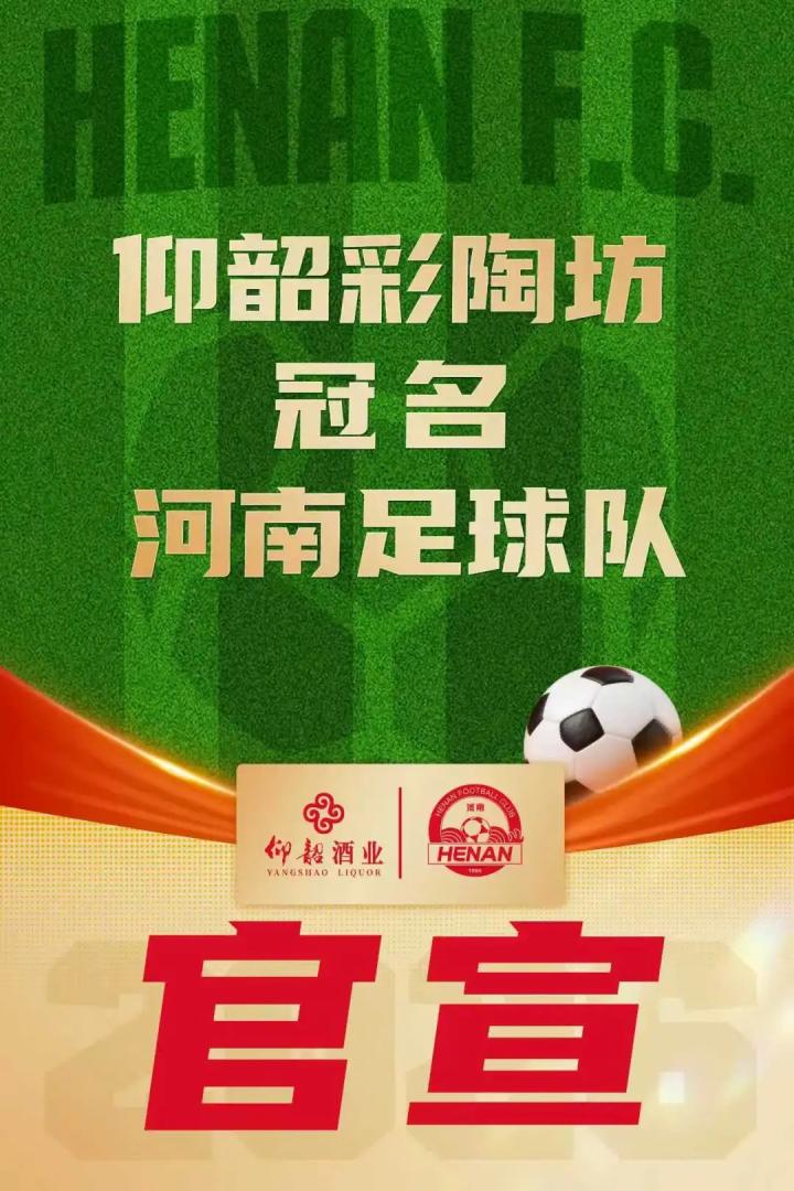 北京时间3月4日,河南俱乐部官方宣布与仰韶酒业达成合作,新赛季将以“河南俱乐部彩陶坊队”之名,征战中国足球职业赛事。