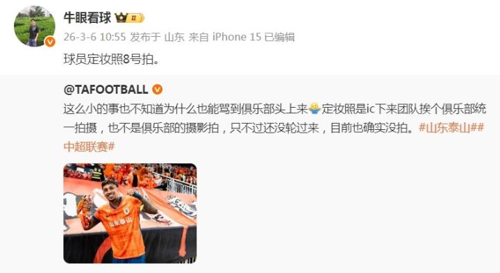 《泰山晚报》记者牛志明透露,山东泰山队新赛季球员定妆照将在3月8日拍摄。