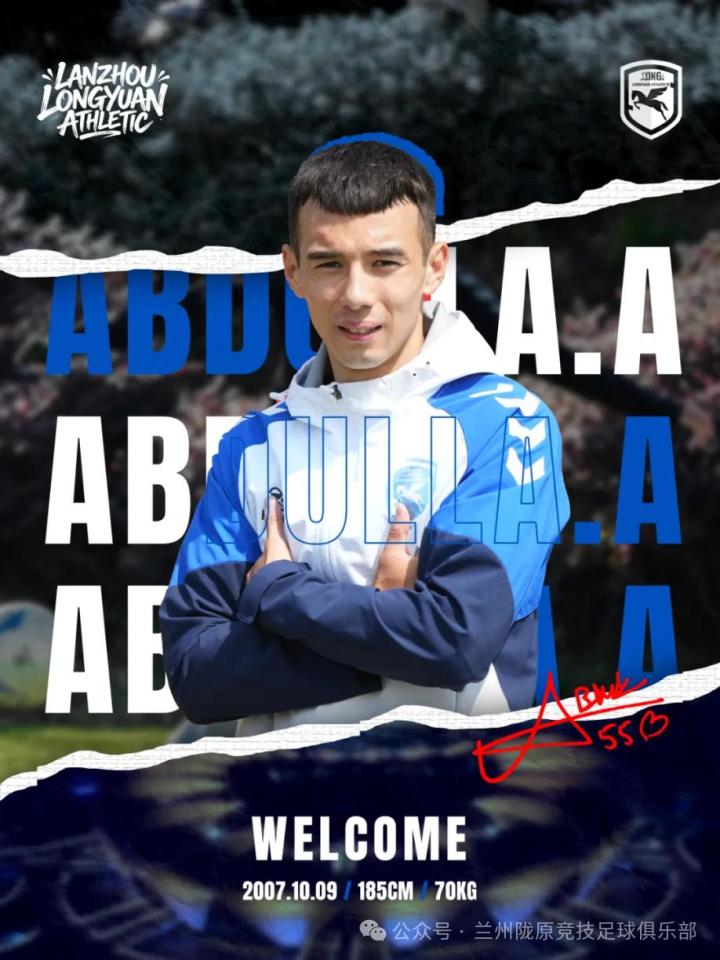 兰州陇原竞技官方宣布,胡宇博、阿卜杜拉-阿布都热合曼、袁征、陆超瑜加盟俱乐部。