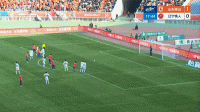 第11分钟,山东队快发边线球,卡扎伊什维利尝试兜射打高