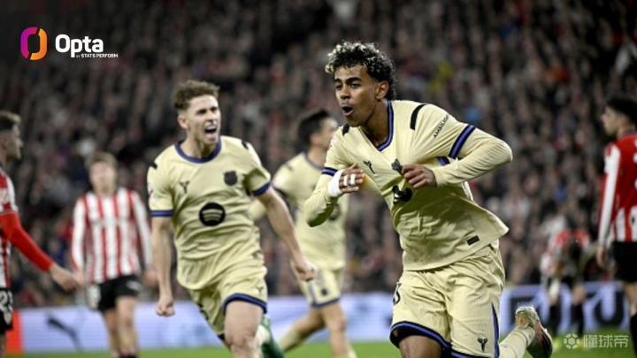 西甲第27轮,巴塞罗那客场对阵毕尔巴鄂竞技,下半场亚马尔破门为巴萨取得领先,至此,亚马尔本赛季西甲已打入14球,成为本世纪代表巴萨单赛季西甲进球第三多的本土球员。