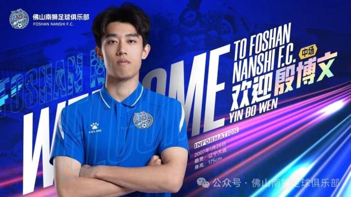 殷博文,2007年1月25日出生于辽宁省大连市,场上司职中场。殷博文出自足球城大连的他,继承了北方球员扎实的基本功和良好的战术素养。在加盟佛山南狮之前,他效力于中超梅州客家足球俱乐部。作为一名极具潜力的中场新星,他在训练和比赛中展现出的灵性与拼劲备受关注。