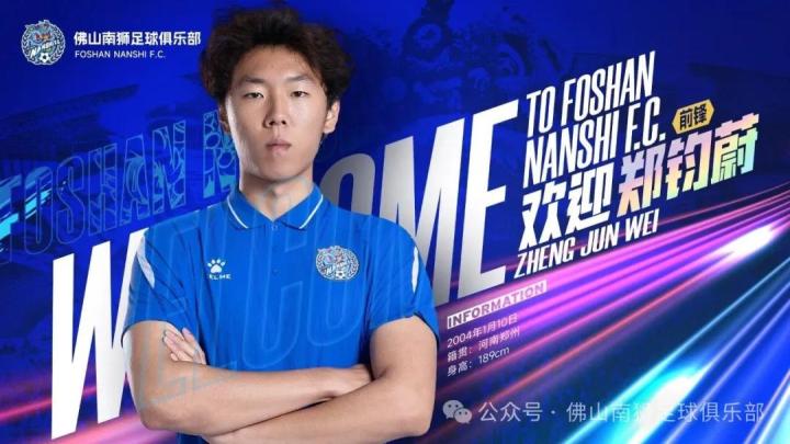 郑钧蔚,2004年1月10日出生于河南省郑州市,场上司职前锋。郑钧蔚对于佛山球迷而言已不陌生。在2025赛季,这位年轻的前锋便已身披南狮战袍征战。上赛季租借期间,他共代表球队出场25次,斩获1粒进球,逐渐在职业赛场上站稳脚跟 。作为一名年仅22岁的前锋,他在前场的冲击力和战术执行力得到了教练组的充分认可。此次续租,意味着佛山南狮的攻击线上保留了一把已经熟悉体系的尖刀。