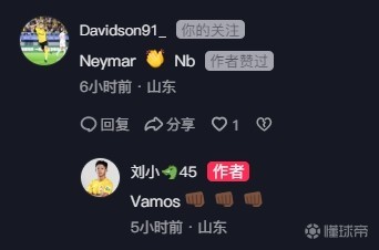 随后,在这条动态的评论区,青岛西海岸外援戴维森留言夸赞:“Neymar(内马尔)Nb。”