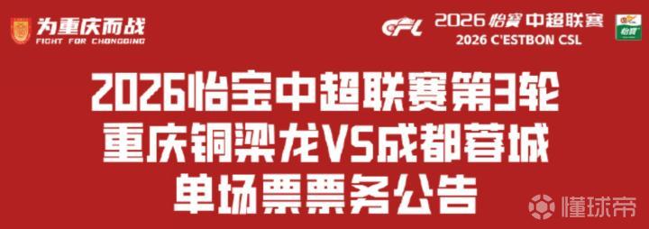 3月17日晚,重庆铜梁龙足球俱乐部公布了第3轮联赛对阵成都蓉城的票务政策。