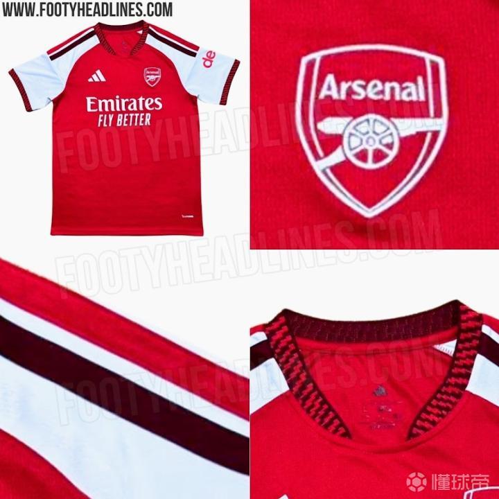 3月27日,足球装备网站Footyheadlines曝光了更多阿森纳队下赛季主场球衣的细节图。这款主场球衣以经典红色为主色调,搭配深酒红色的领口、袖口和肩部三条纹,同时加入了锯齿状闪电图案,带来视觉层次感和动感设计,让人不禁联想到俱乐部历史上的经典球衣风格。