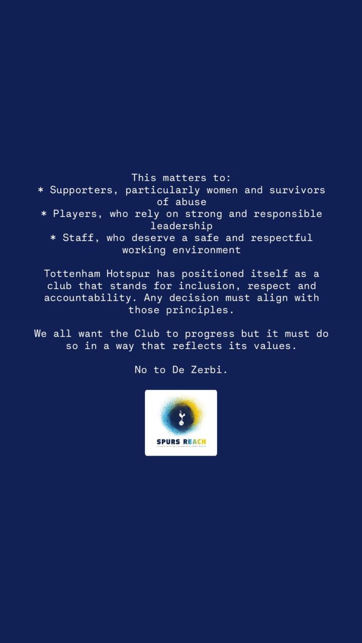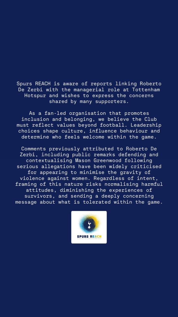 热刺同心(Spurs REACH)注意到了将罗伯托-德泽尔比与热刺主教练职位联系起来的报道,希望在此表达众多球迷共同的担忧。
