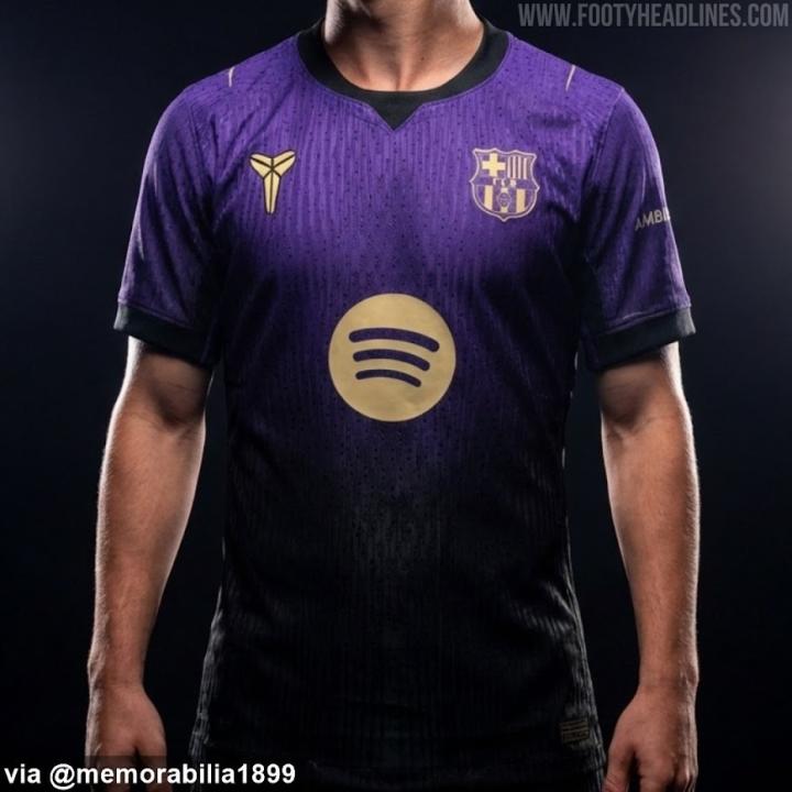 耐克为巴萨推出的26-27赛季全新客场球衣,以深邃且极具视觉冲击力的“暗夜紫”与“黑色”交织作为底色,其设计灵感主要源自洛杉矶湖人队的经典球衣。