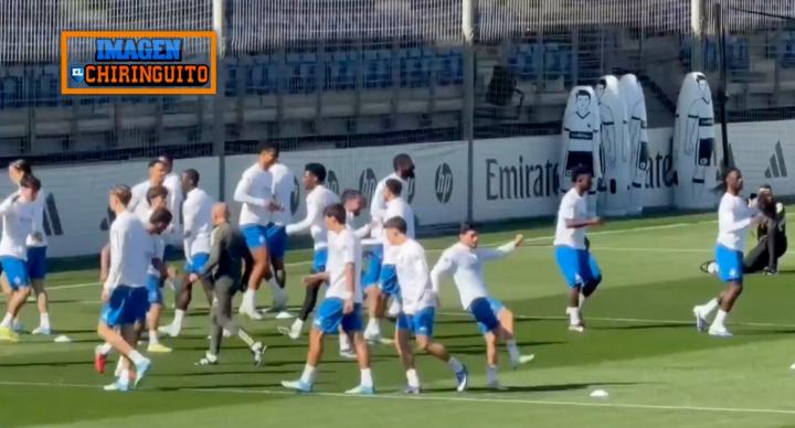 据报道,在皇马对阵拜仁的赛前最后一练中,费兰-门迪参加了球队合练。