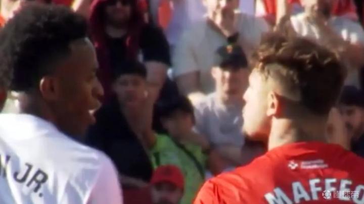 报道称,马略卡后卫马菲奥与维尼修斯多年来一直是西甲最具争议、最激烈的一对死对头。在皇马1-2落败的比赛中,两人再次交锋。