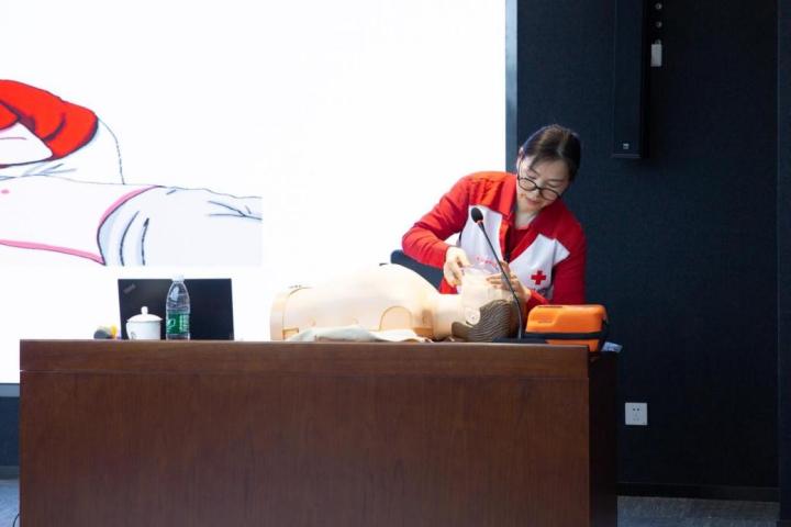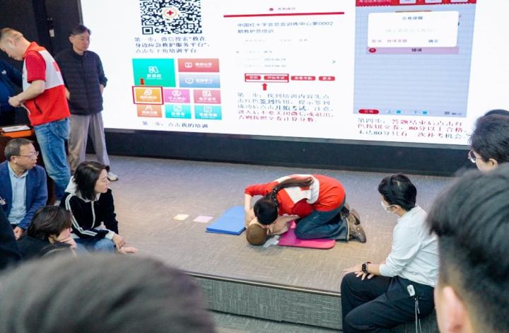 本次培训特邀中国红十字会总会训练中心9位资深急救讲师义务授课。课程采取“理论讲解+实操演练”模式,讲师围绕现场心肺复苏C-A-B流程,系统讲解急救理论知识,包括环境安全评估、判断意识、检查呼吸、规范呼救、胸外按压、开放气道、人工呼吸等关键环节的标准动作要领。同时,详细介绍AED自动体外除颤器开机、粘贴电极、分析心律、电击除颤全流程,强调防水、防干扰、避开起搏器等安全规范,并耐心解答学员各类疑问,确保教学内容易懂易学。