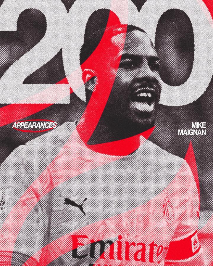 队长迈尼昂在本场比赛当中为米兰首发出场,这位法国门将就此迎来了属于自己的里程碑时刻——这是他在米兰生涯的第200次出场。